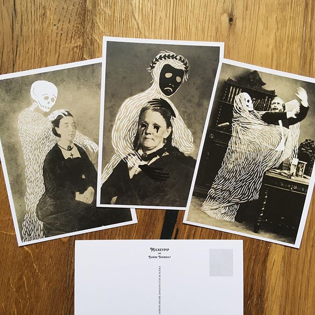While these crooks claimed to reunite people with loved ones via the spirit plane, I wanted to reconnect people with their kindred spirits IRL through something a bit more terrestrial: the good old fashioned postal service. So, I created Macabre Mail – illustrating new digital spirits over the old photos. I then wrote micro poems for each image, and turned them into postcards. They’re intended as a reminder that life is fleeting, and that technology isn’t the only way to connect.